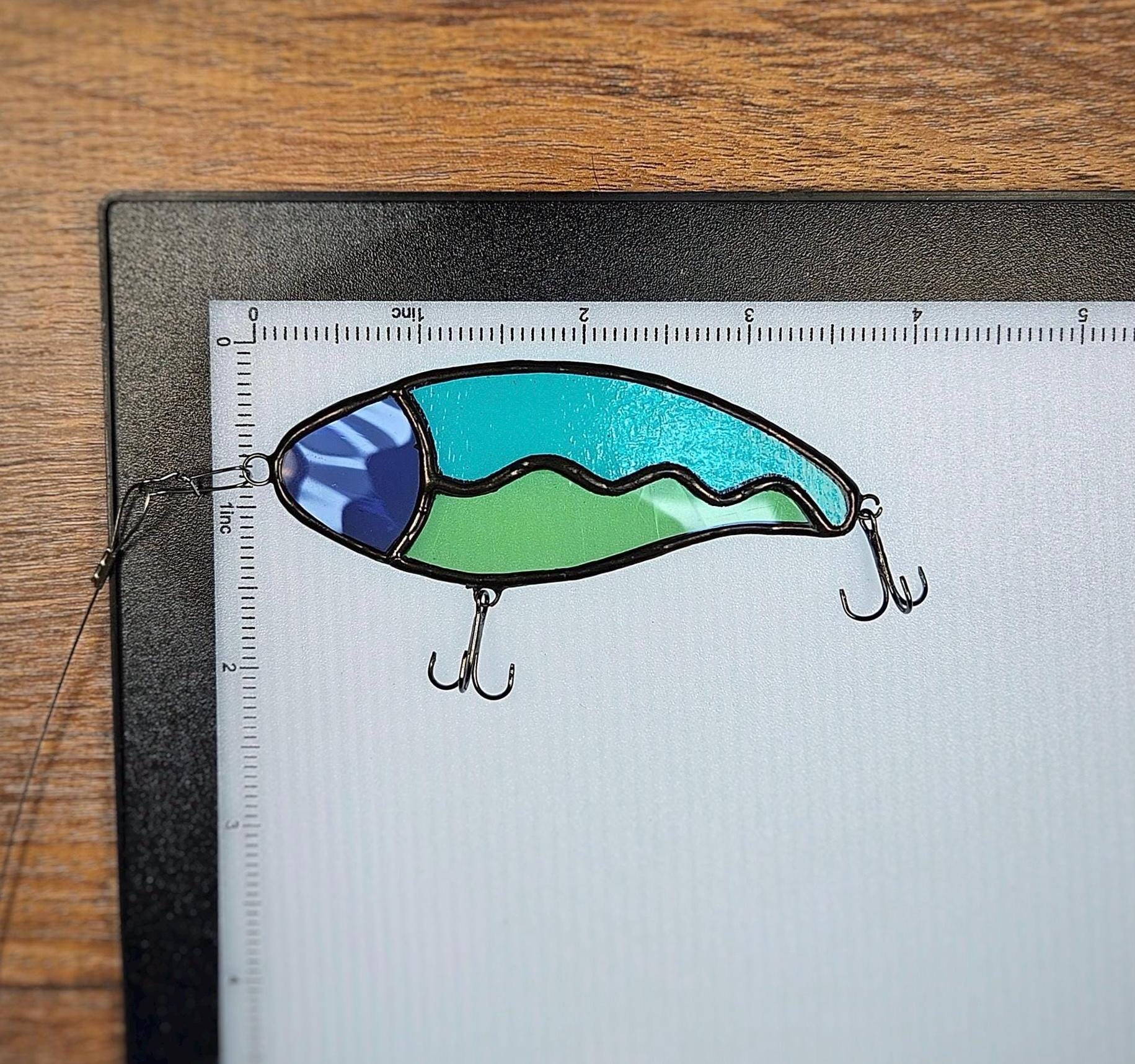 The design I used to create this stained glass fishing lure was hand drawn by me.