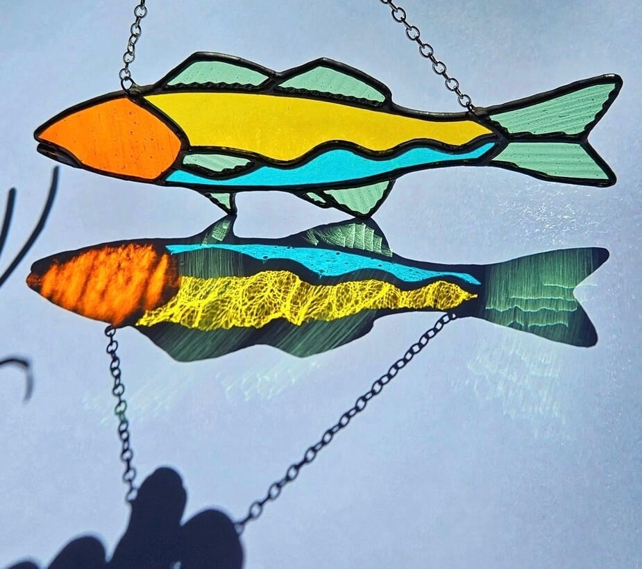 Orange, Yellow, Blue, and Green Stained Glass Trout π