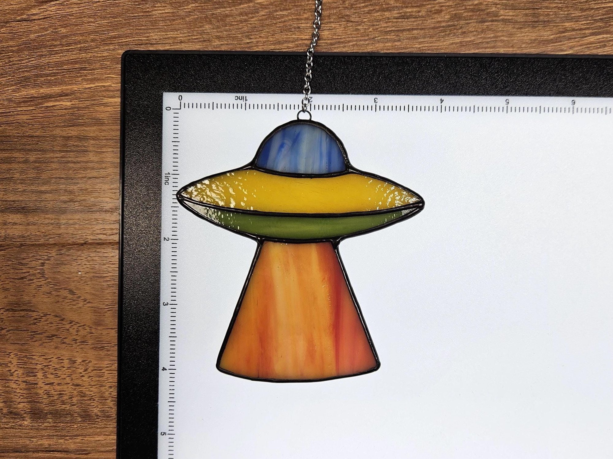 Stained Glass UFO - Blue, Yellow, Green, Orange