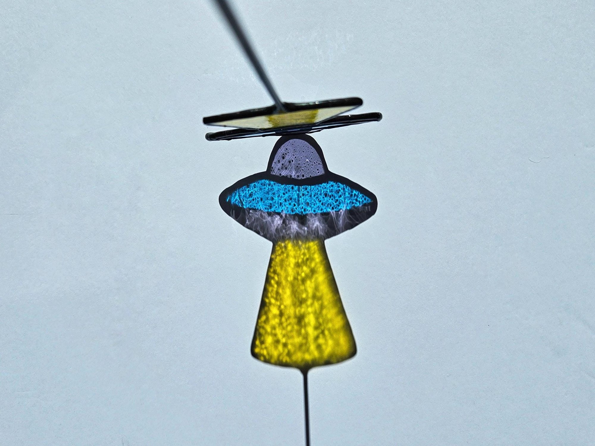 Purple, Blue, and Yellow Stained Glass UFO Plant Stake.